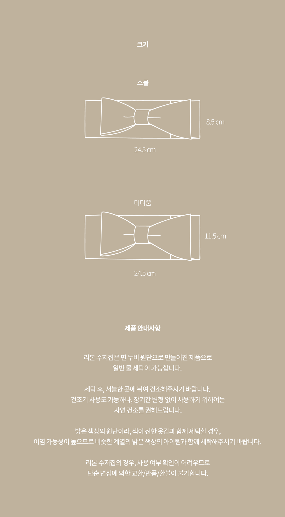 - 단순 변심의 경우 수령일로부터 7일 이내까지 교환∙반품이 가능합니다. (교환/반품비 고객님 부담)