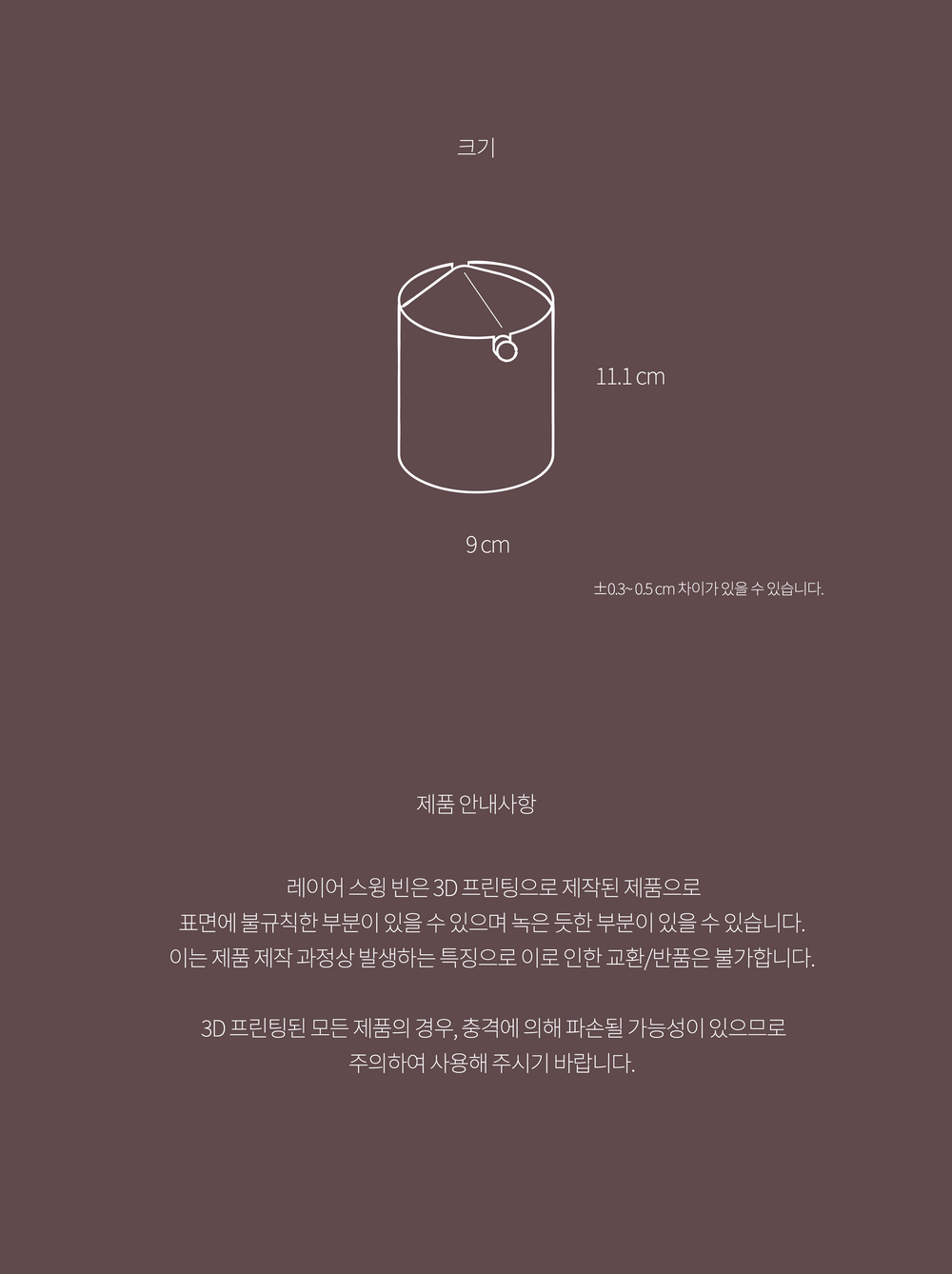 - 제품 특성상 단순 변심, 부주의에 의한 제품 손상 및 파손, 사용 및 개봉한 경우 교환/반품이 불가합니다.
