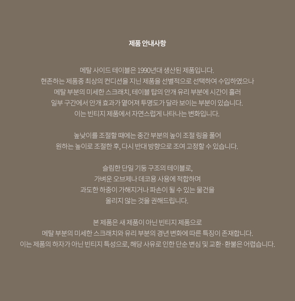 - 해당 제품은 빈티지 제품으로 단순 변심에 의한 교환 및 환불이 불가합니다.
