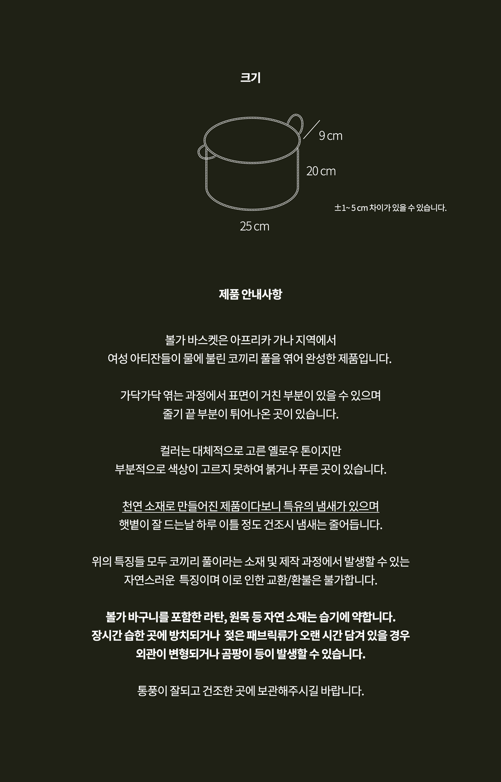 - 단순 변심의 경우 수령일로부터 7일 이내까지 교환∙반품이 가능합니다. (교환/반품비 고객님 부담)
