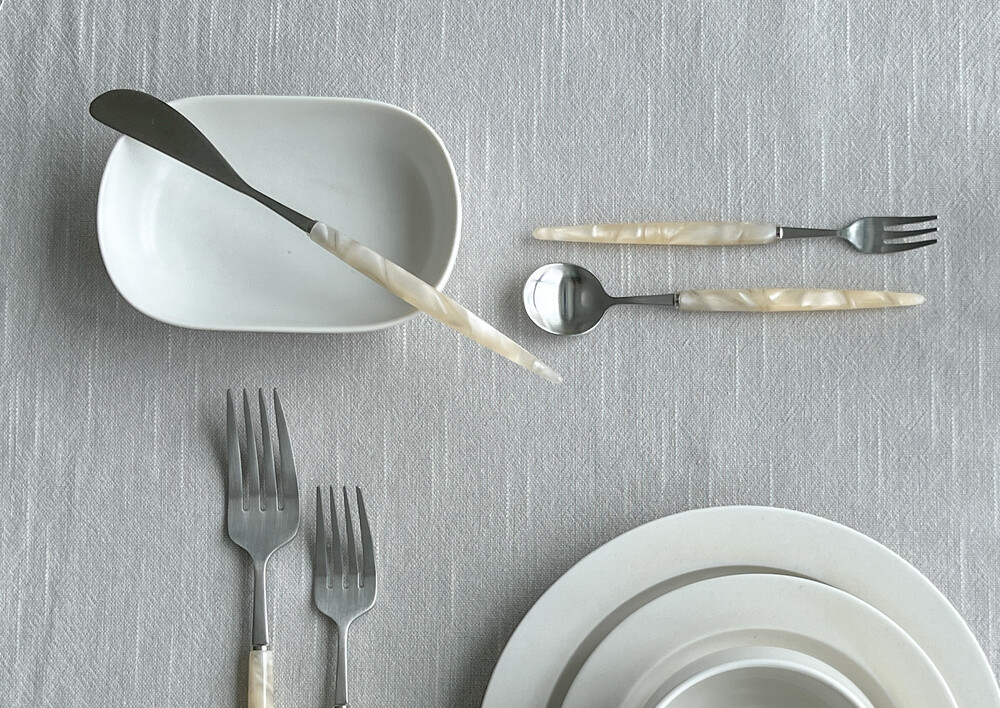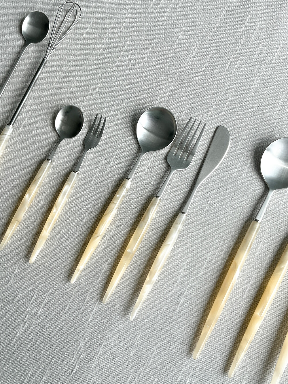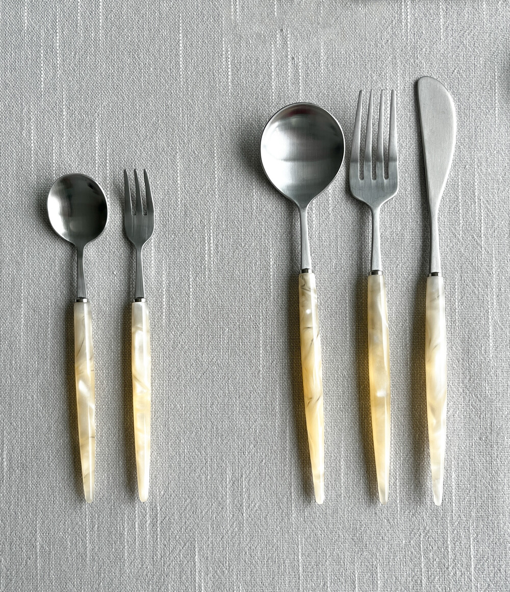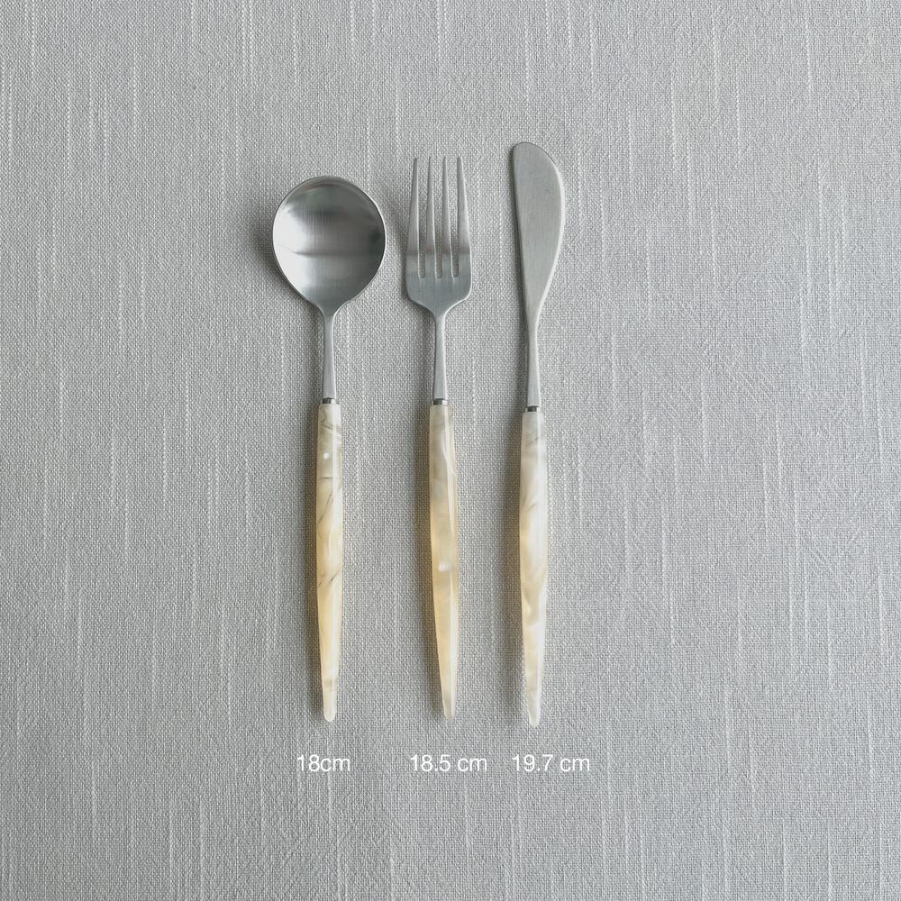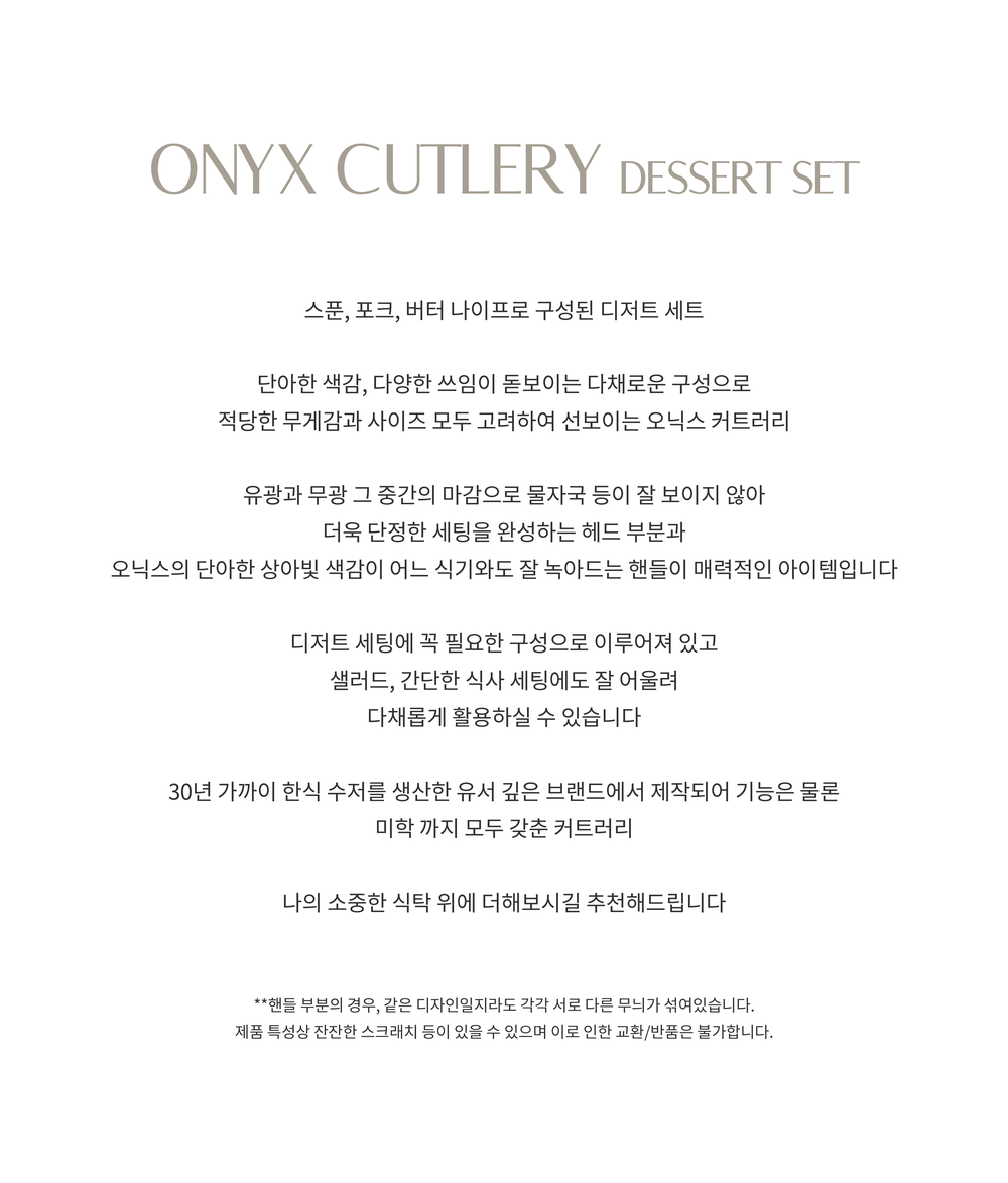 맑은 오닉스 색감의 디저트 커트러리 세트.