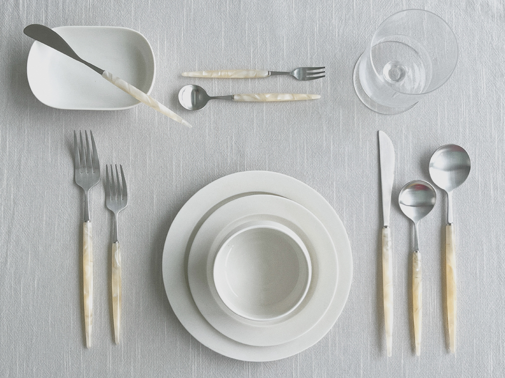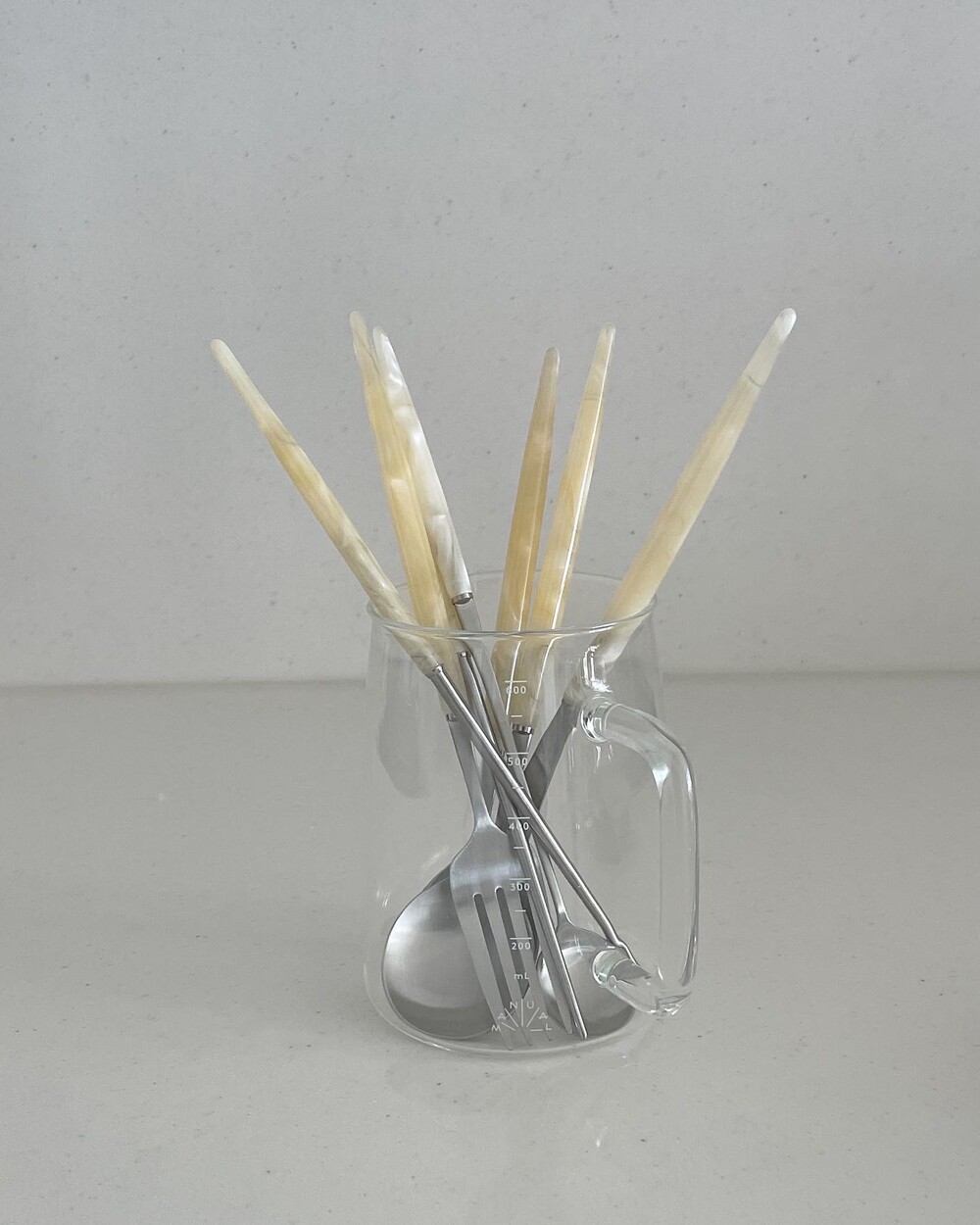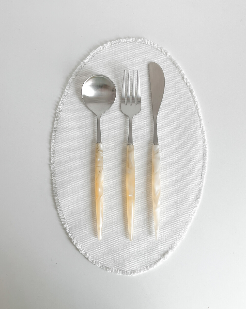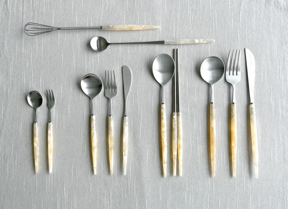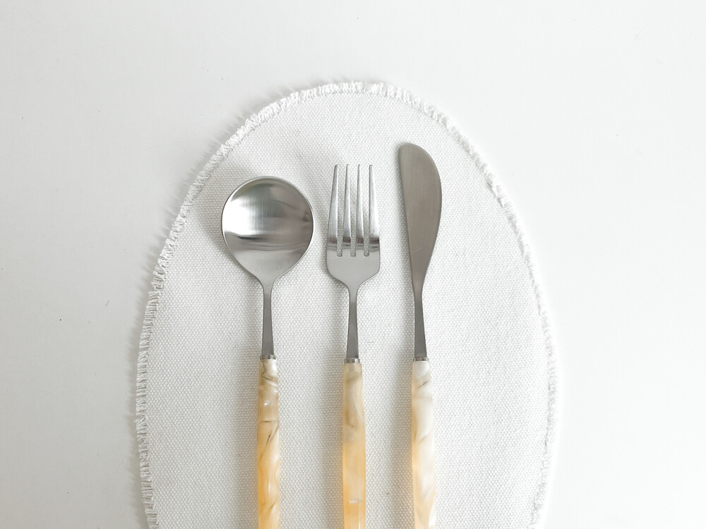 맑은 오닉스 색감의 디저트 커트러리 세트.
