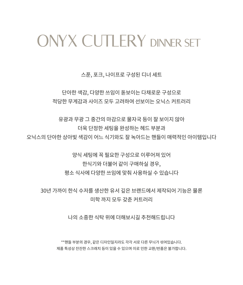 맑은 오닉스 색감의 디너 커트러리 세트.