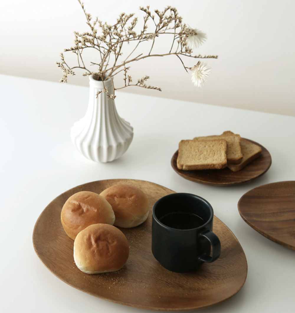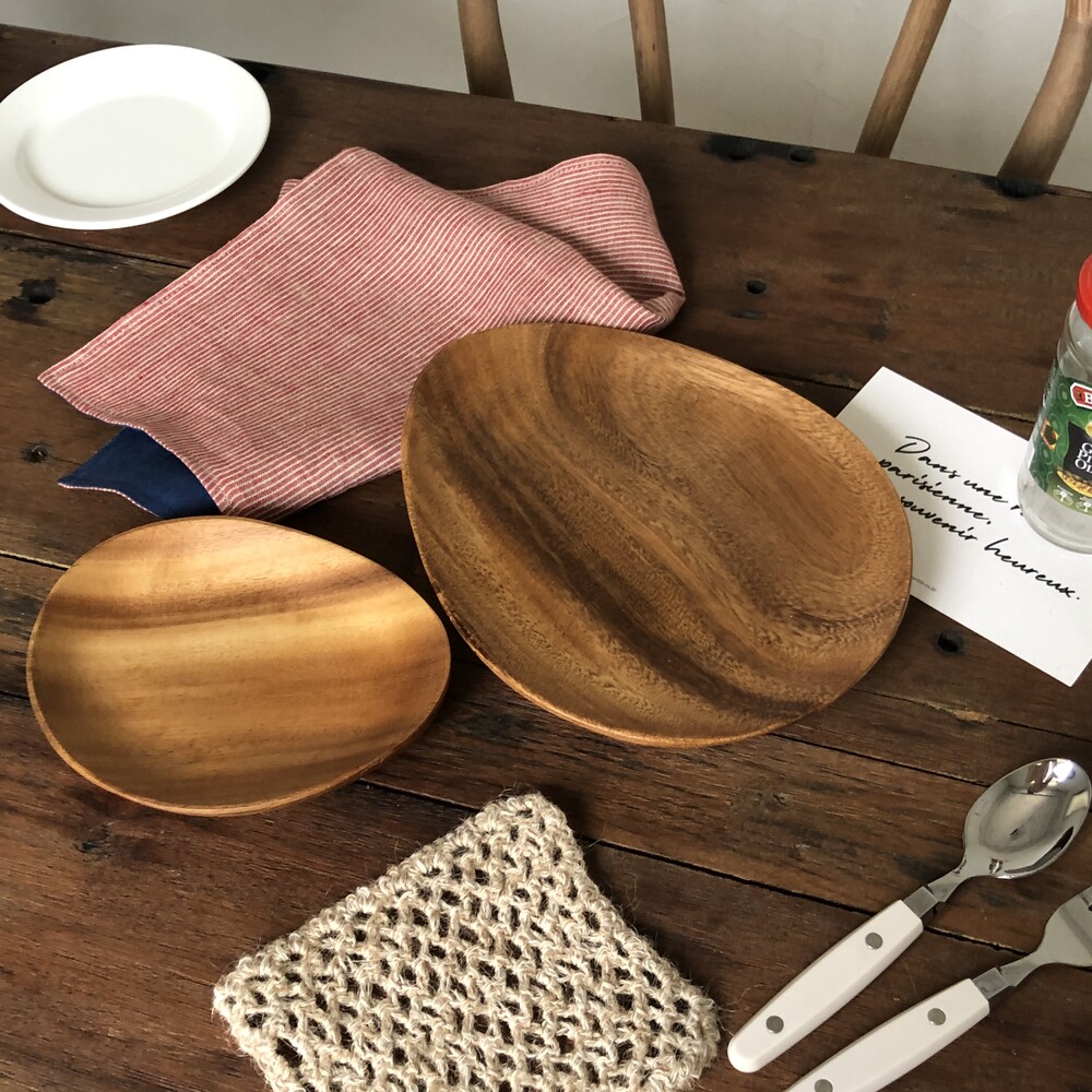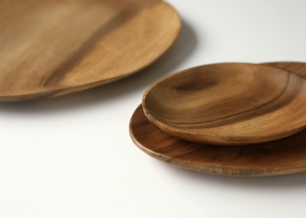 원목으로 된 접시는 가벼우면서도